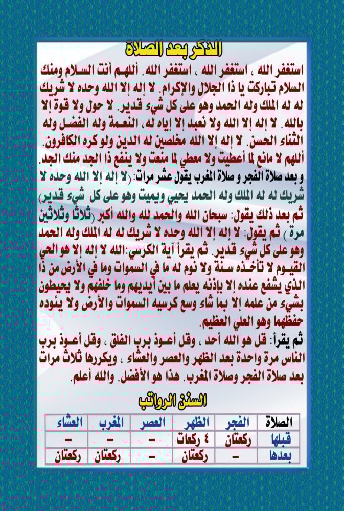 أذكار بعد الصلاة / برنامج حفظ القران - 100 كرت - عربي